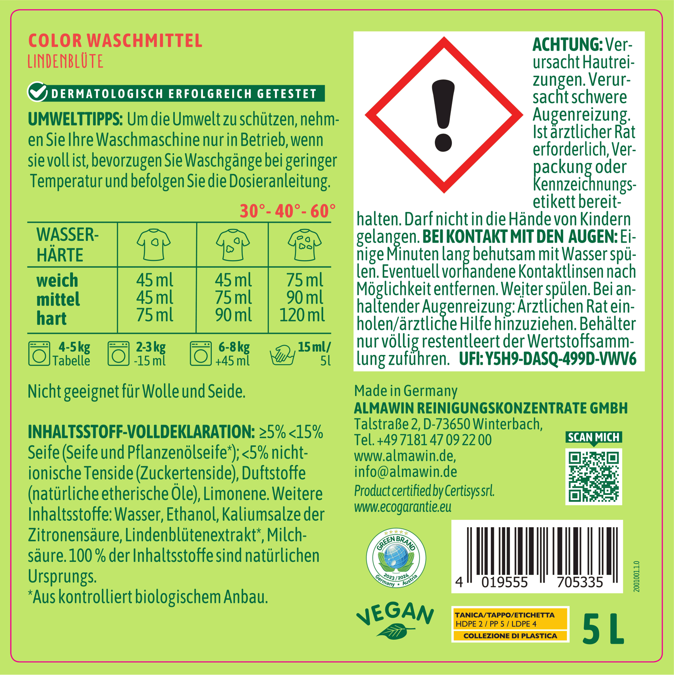 | Hersteller: | AlmaWin Reinigungskonzentrate GmbH, Talstraße 2, 73650, Winterbach, Deutschland, info@almawin.de, www.almawin.de |