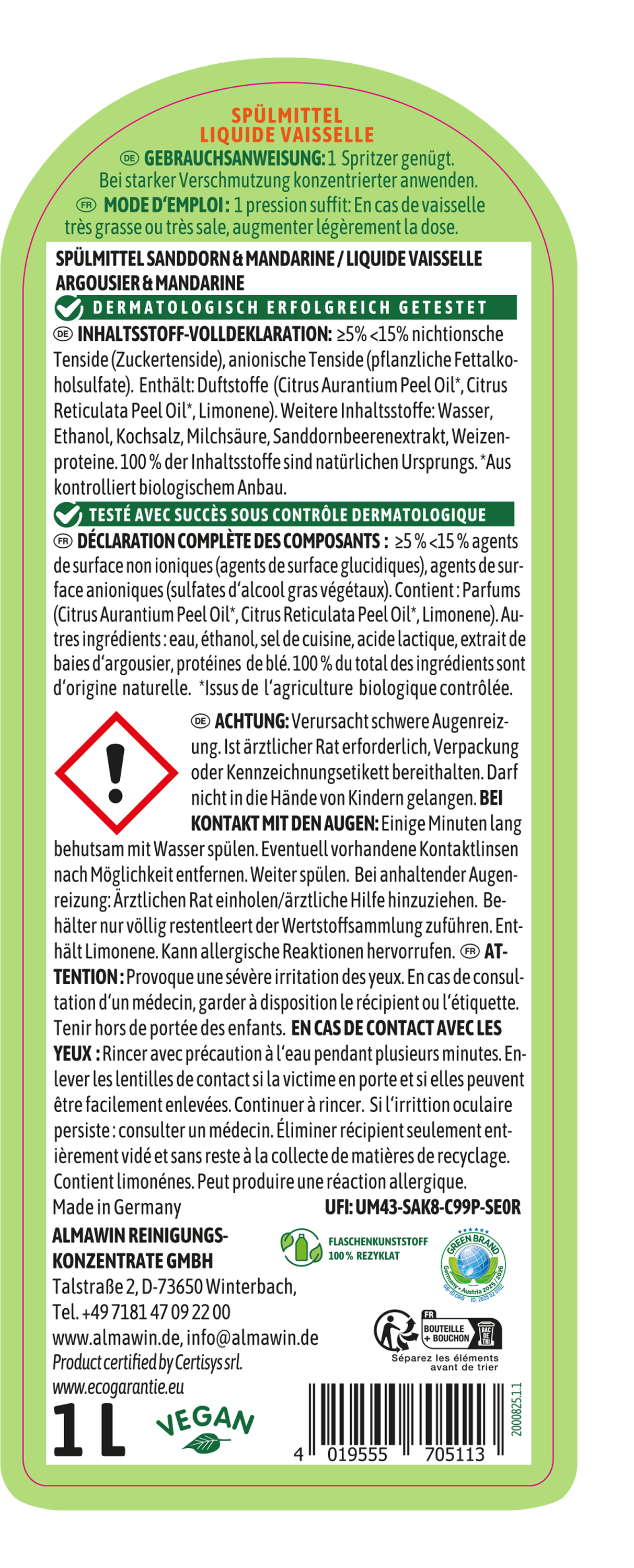 5 Erfahrungsberichte in Deutsch für AlmaWin Spülmittel Sanddorn Mandarine