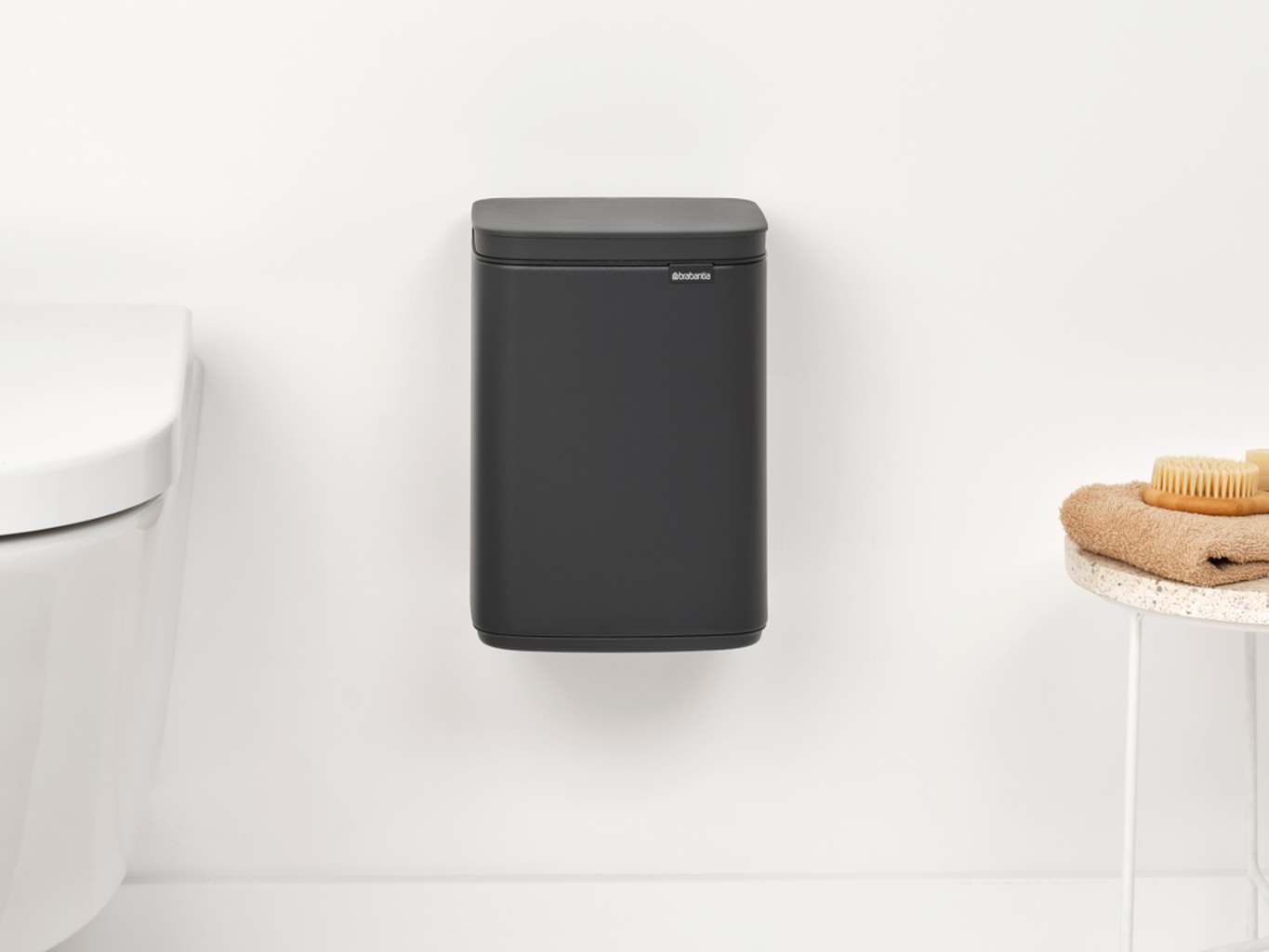 The small 4 L BO waste bin can even be mounted on the wall or door (wall bracket, hardware and assembly instructions are included).