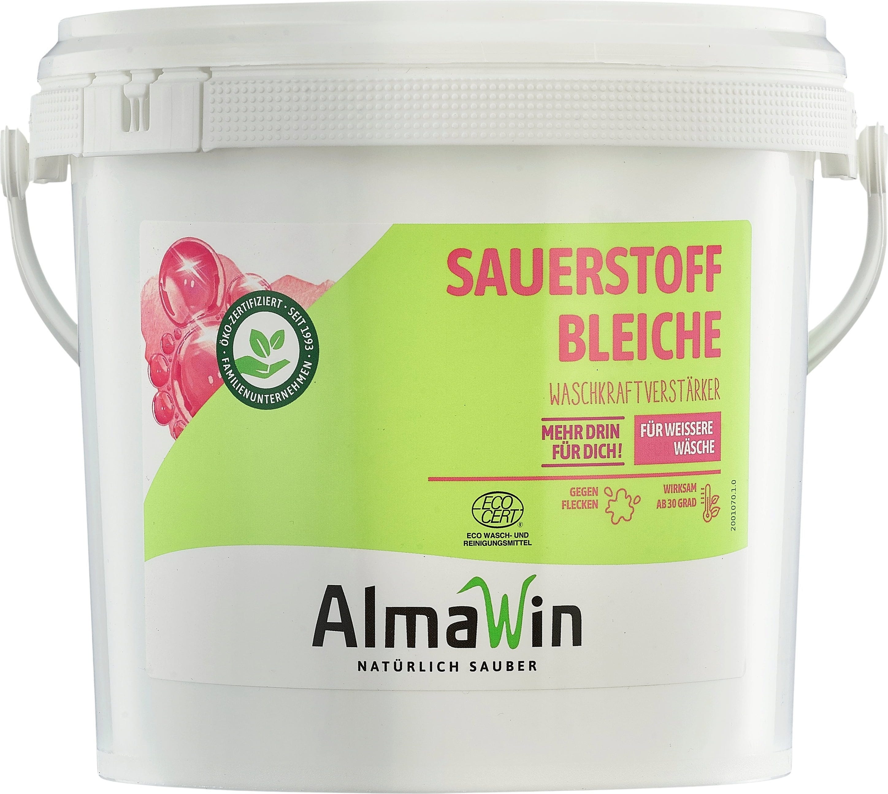 Ingredients (INCI): ≥15% <30% bleach based on oxygen, <5% non-ionic surfactants (plant sugar surfactants), sodium carbonate, sodium bicarbonate, sodium sulfate, TAED (Bleach), sodium citrate.