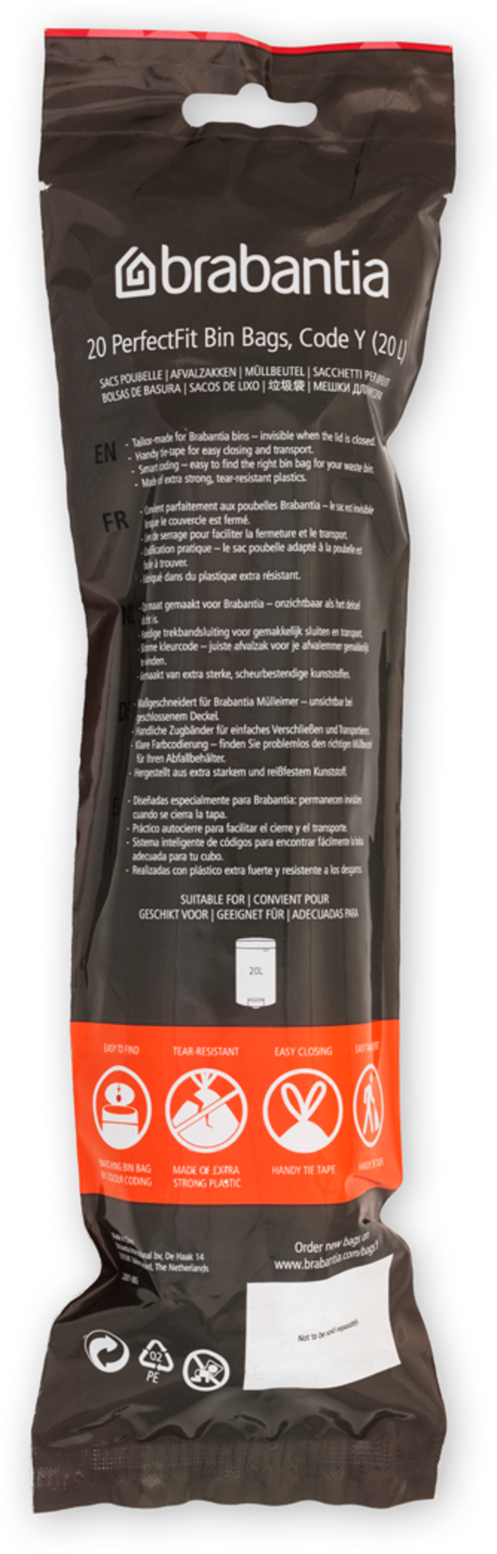 brabantia Sacs Poubelle PerfectFit pour Bo Touch Bin - Rouleau, 20L (Y) - 20 sacs