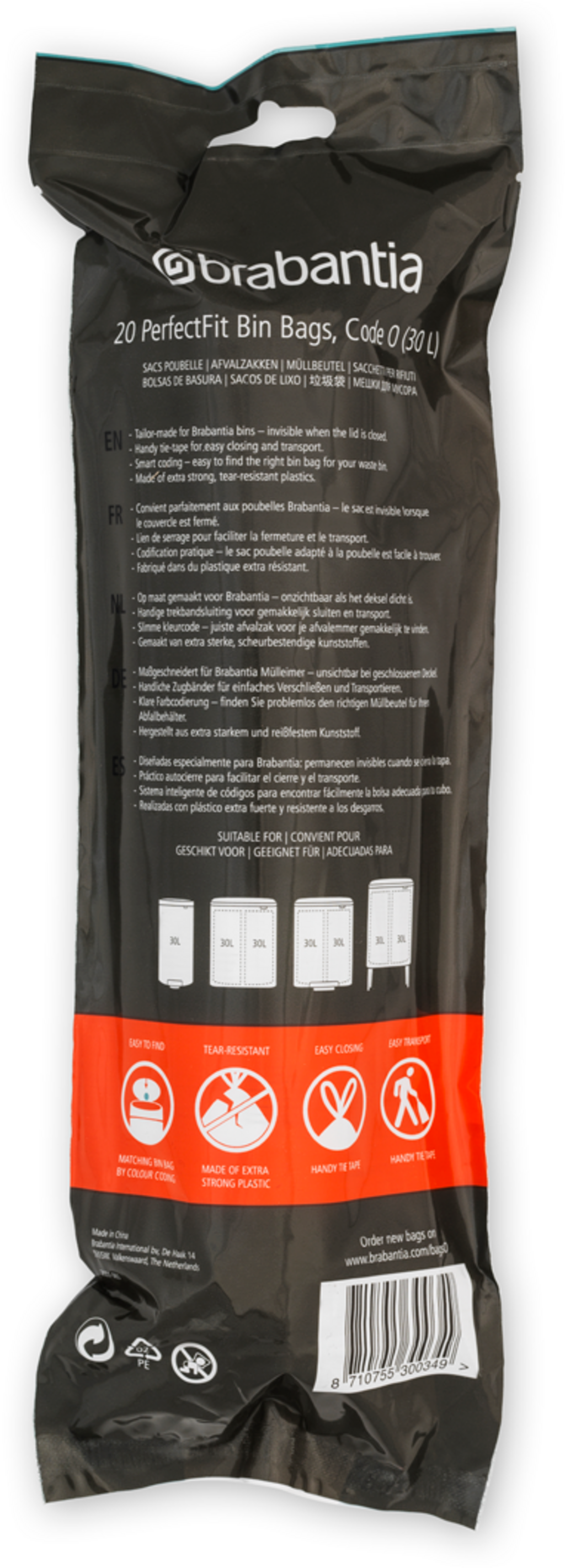 brabantia Sacs Poubelle PerfectFit pour Bo Touch Bin - Rouleau, 30L (O) - 20 sacs