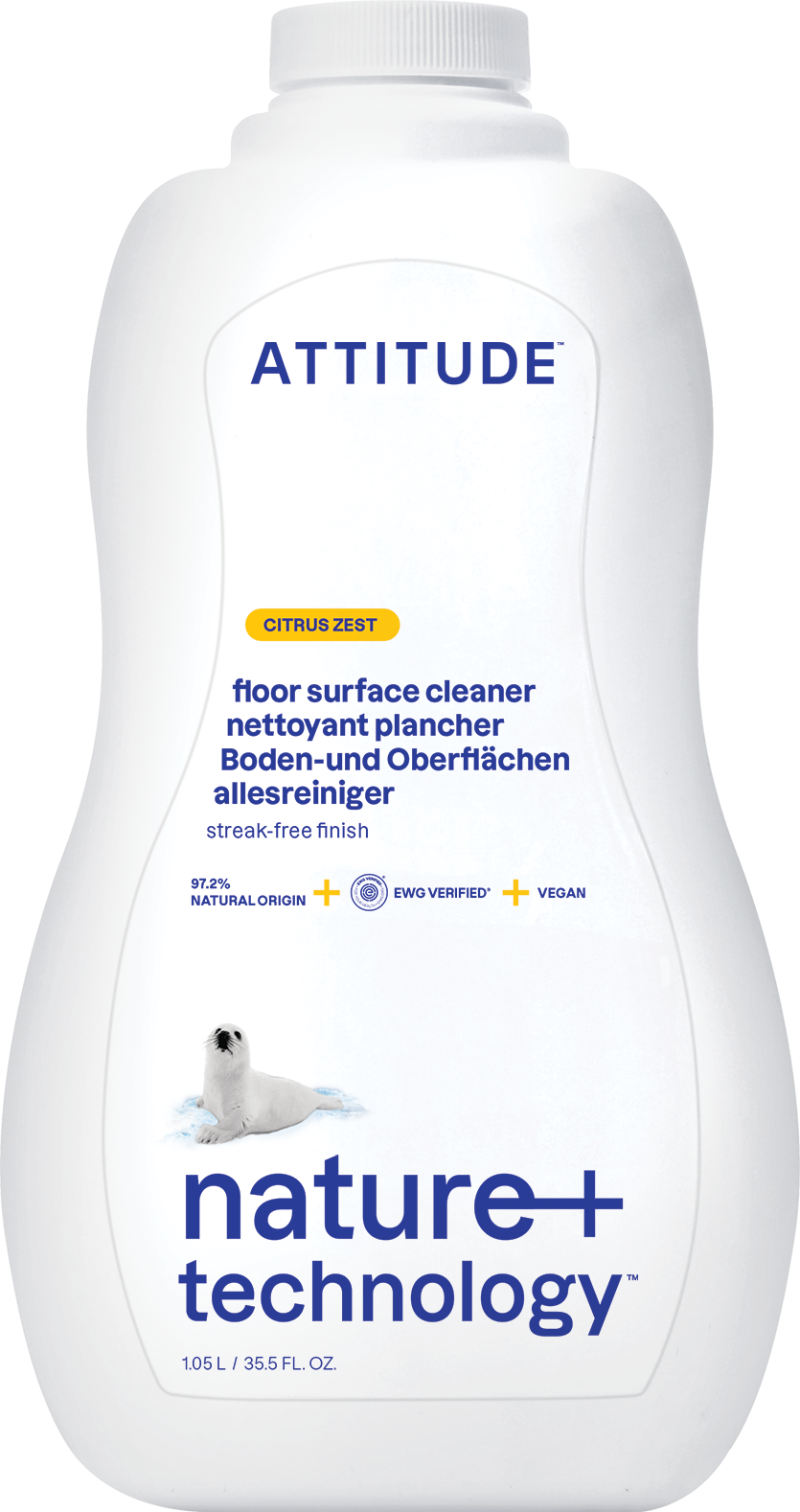 Questo detergente di ATTITUDE ti permette di pulire perfettamente tutti i pavimenti, anche quelli in legno, senza lasciare aloni.