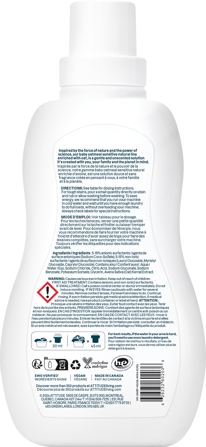 1 recensione in italiano sul prodotto ATTITUDE Sensitive - Detersivo Liquido per Capi dei Bambini