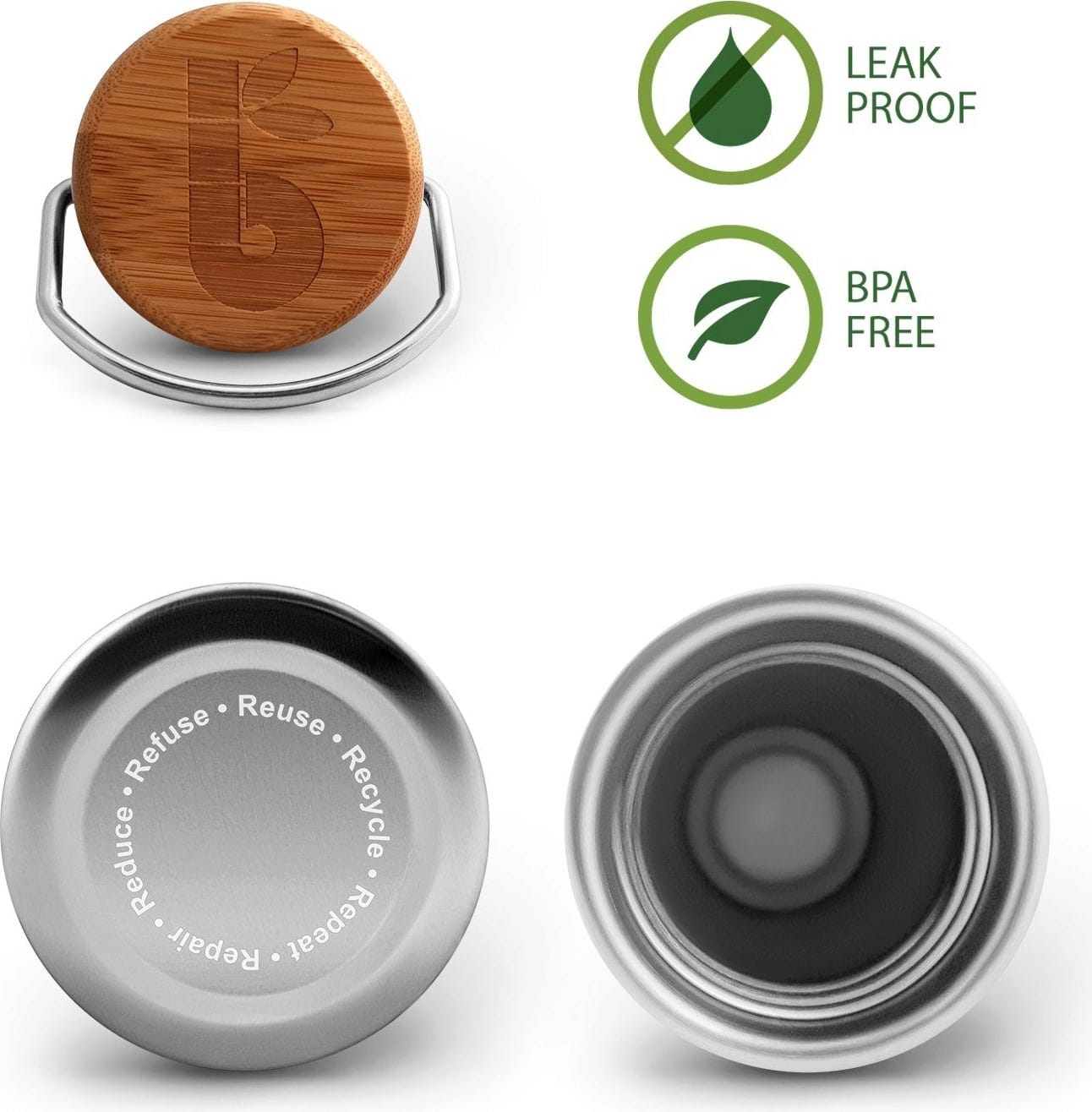 Questa borraccia è perfetta per la tua vita quotidiana! Infatti, è ideale sia per lo sport, in ufficio, a scuola o per le escursioni. È realizzata in acciaio inossidabile, ha un tappo a vite in bambù a prova di perdite e presenta un design semplice e classico. La bottiglia è priva di sostanze chimiche nocive e può essere facilmente pulita con una spazzola specifica dopo l'uso.