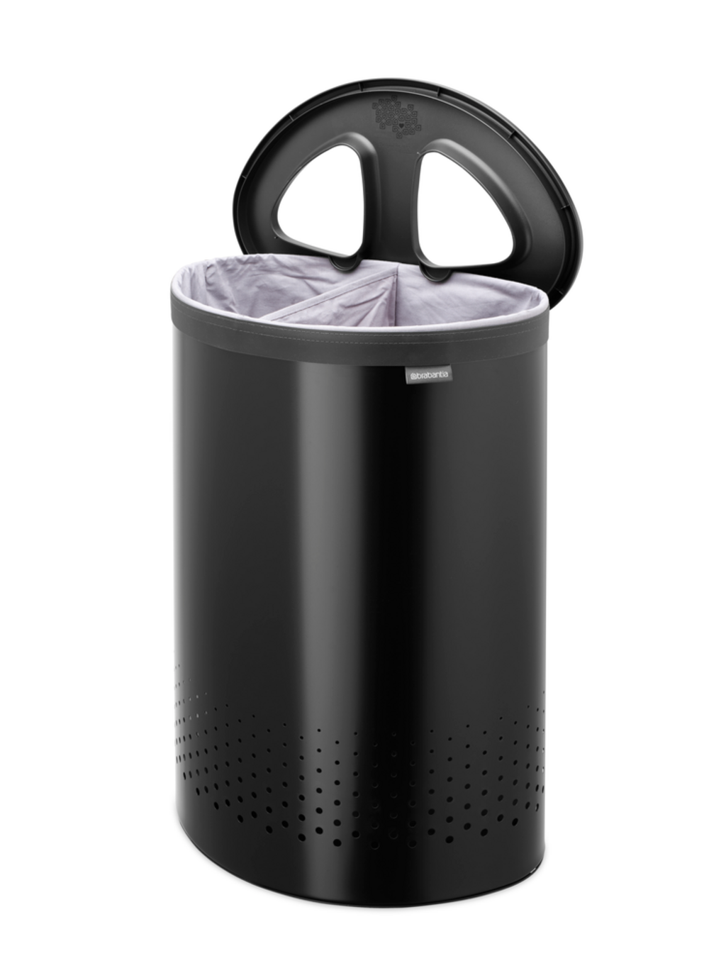Due contenitori per la biancheria che richiedono solo lo spazio di uno: è esattamente ciò che offre questo intelligente ed elegante portabiancheria di Brabantia. È la soluzione salvaspazio perfetta per raccogliere e separare il bucato, riportando l'ordine in casa. L'innovativa apertura Quick-Drop ti consente di inserire facilmente il bucato. Il sacco per i panni integrato, con due scomparti è rimovibile, il che facilita il trasporto. Il coperchio di plastica nasconde la vista del contenuto del contenitore.