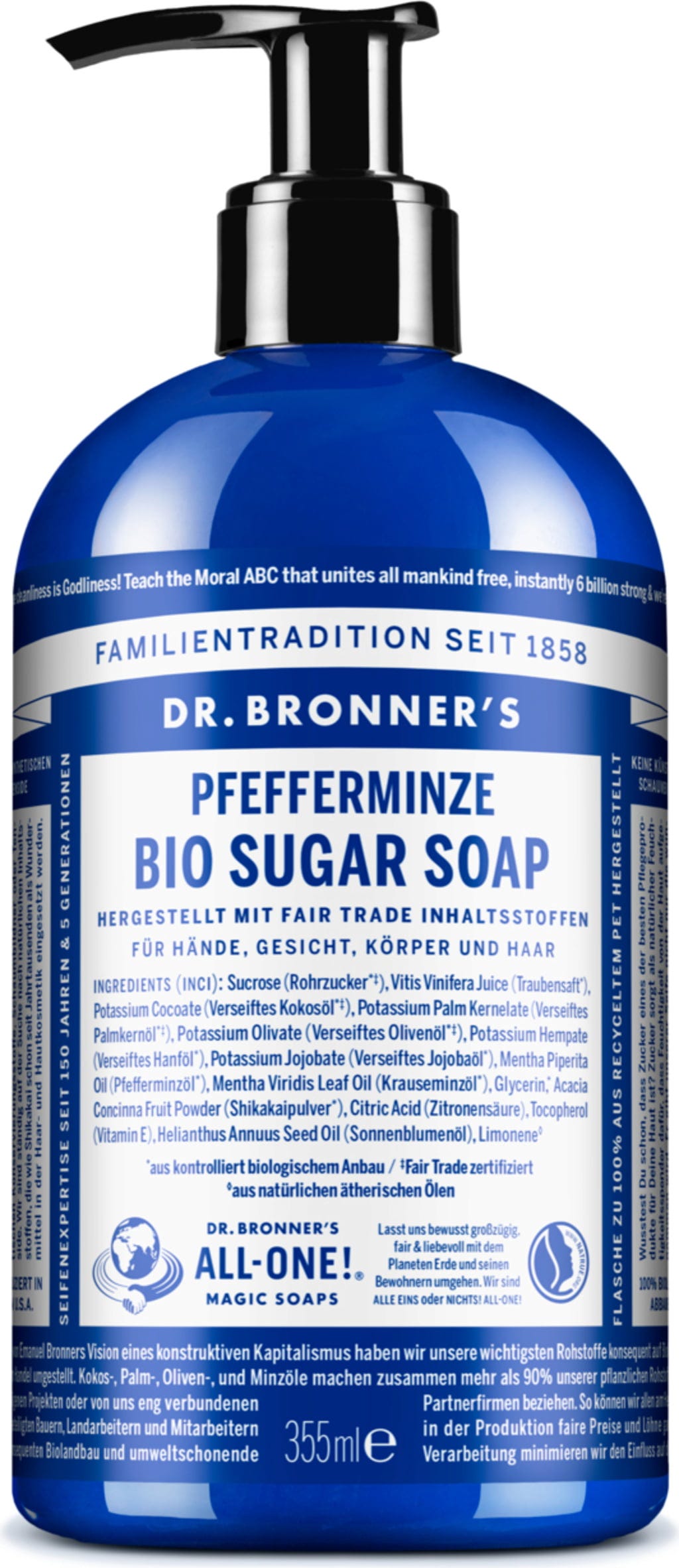 Dr. Bronner's Sugar Soap - Menta Piperita, 355 ml