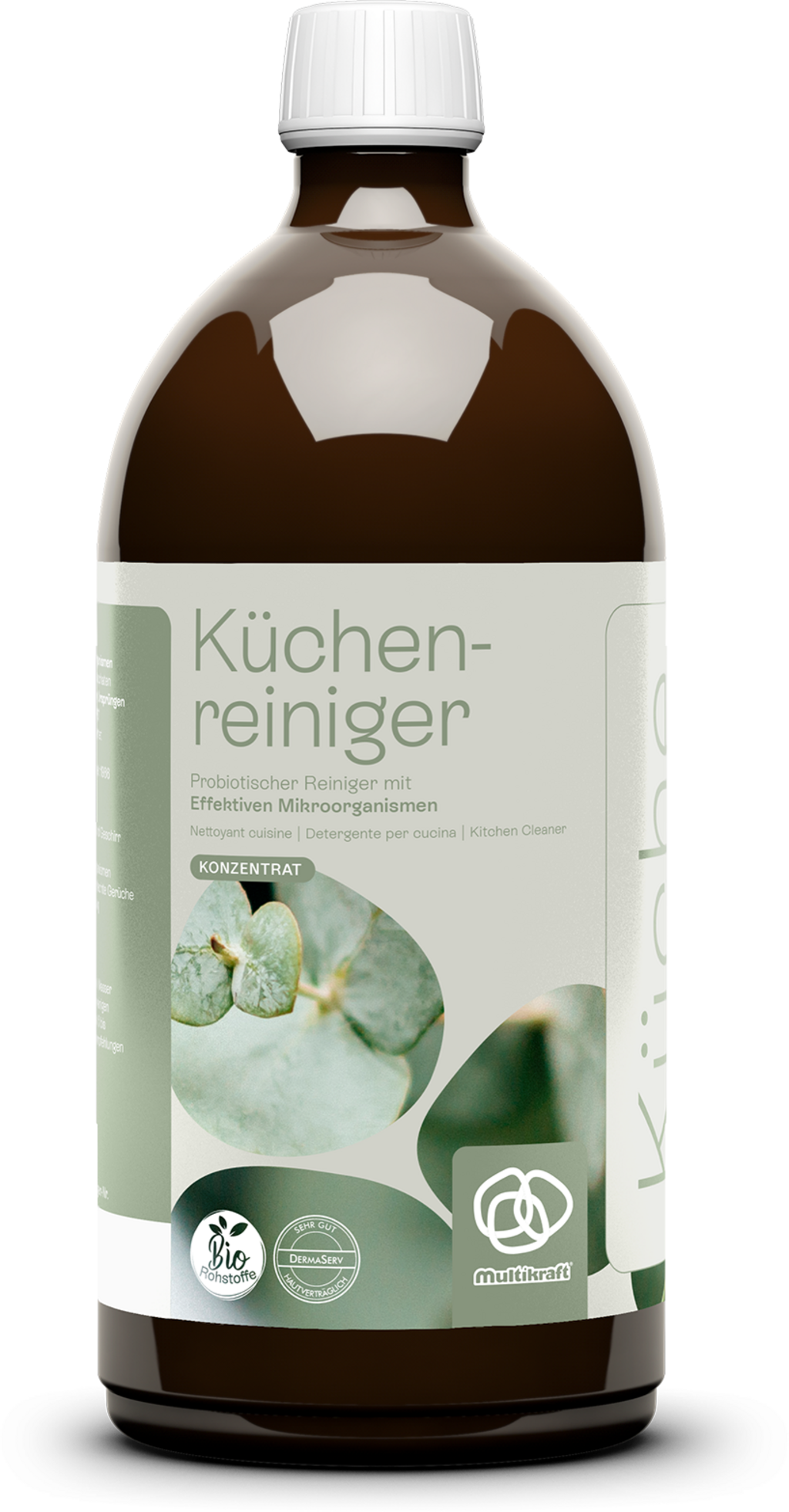 L'estratto di semi di pompelmo contenuto in questo detergente ha proprietà sgrassanti ed è quindi efficace contro le macchie di unto ostinate. I microrganismi attivi contenuti si depositano sulle superfici e decompongono lo sporco organico, rimanendovi e riattivandosi in caso di nuovo sporco. Il detergente è concentrato, si diluisce in acqua e può essere utilizzato su mobili e piani di lavoro della cucina, così come su cappe aspiranti, frigoriferi, forni e molte altre superfici.