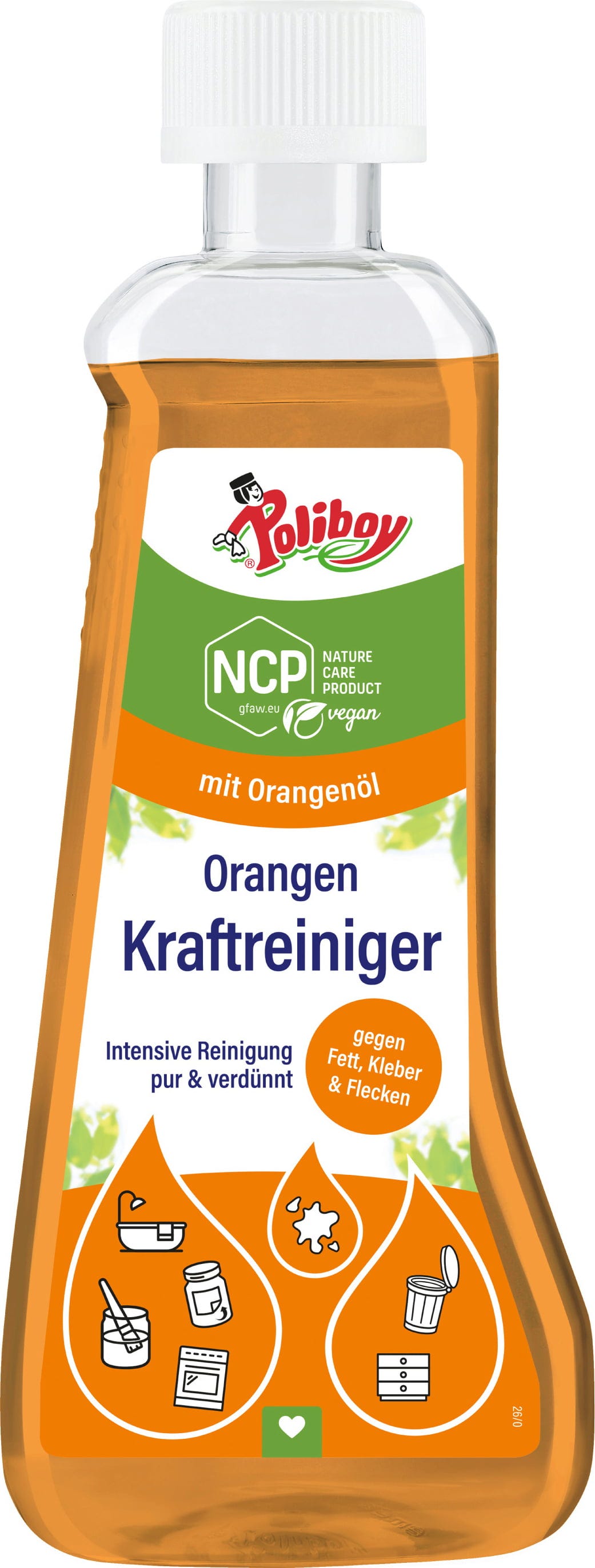Il detergente concentrato all'arancia di Poliboy è un prodotto versatile per la pulizia della casa, efficace contro ogni tipo di sporco. Rimuove facilmente macchie, residui di vernice e smalto, colle, incrostazioni ostinate e persino gomme da masticare. La formula è a base di olio essenziale di arancia e può essere utilizzata pura, in caso di sporco particolarmente resistente, oppure diluita per la pulizia di pavimenti, superfici, forni, piani di lavoro, lavelli e bidoni della spazzatura. Garantisce una pulizia profonda e lascia nell'ambiente un fresco e naturale profumo di arancia.