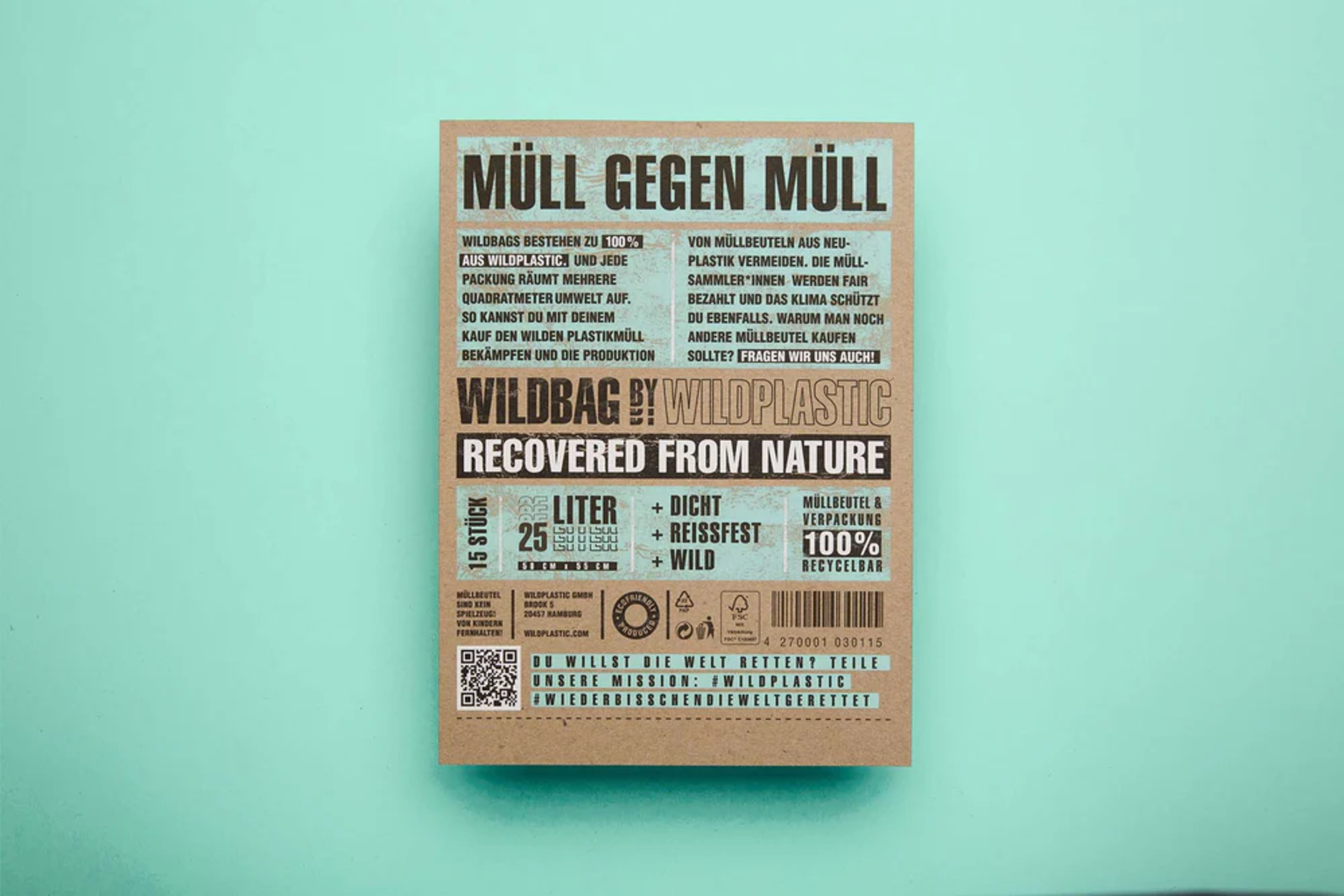 WILDPLASTIC Wildbag - Sacchi per la Spazzatura 25 L, 15 sacchi